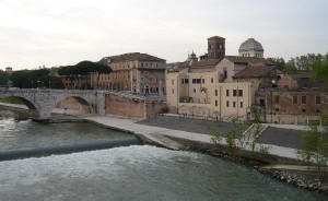 L'isola Tiberina è collegata alla terraferma dai caratteristici