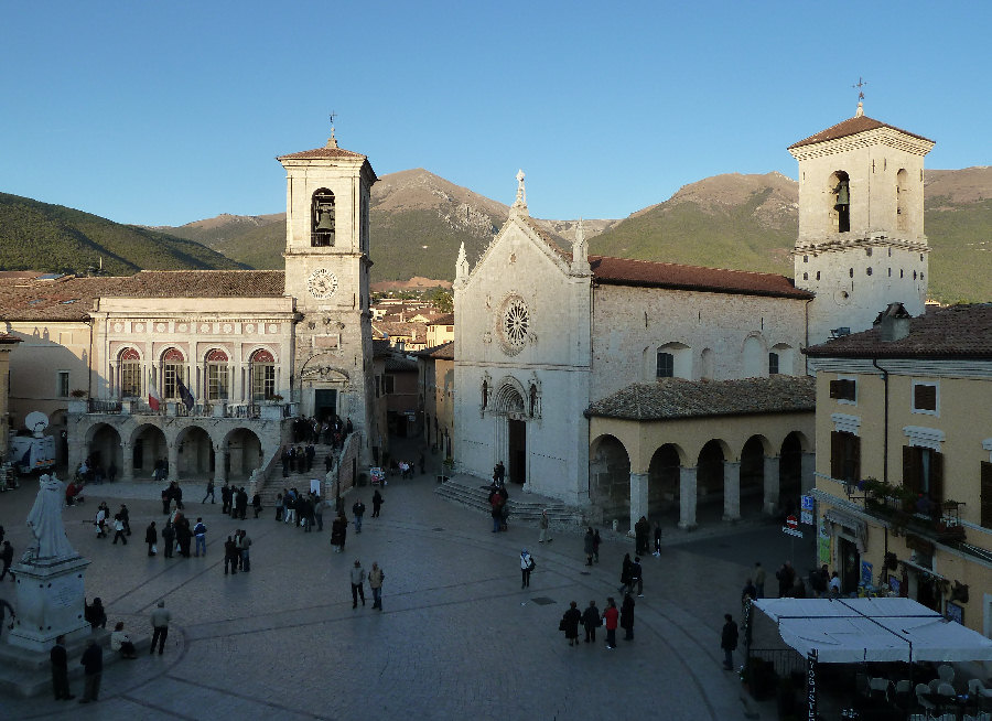 concentrano gli edifici simbolo della identità di Norcia: